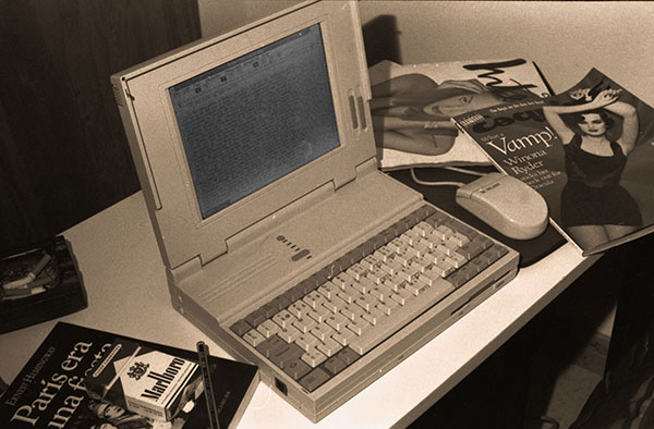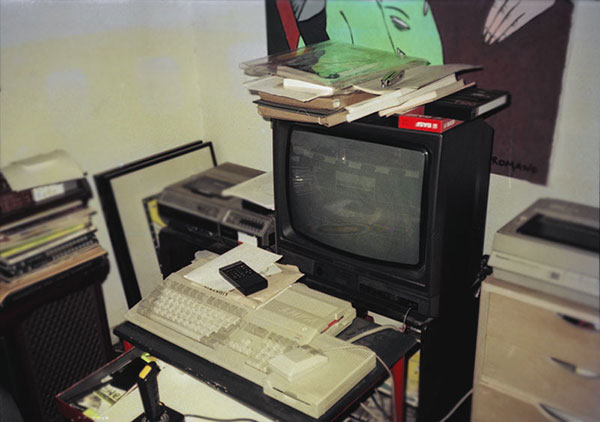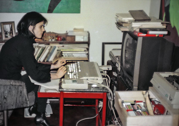 Arriba: escribiendo Luna India en Amiga 500, 1991. Abajo: comenzando la segunda novela, 1993