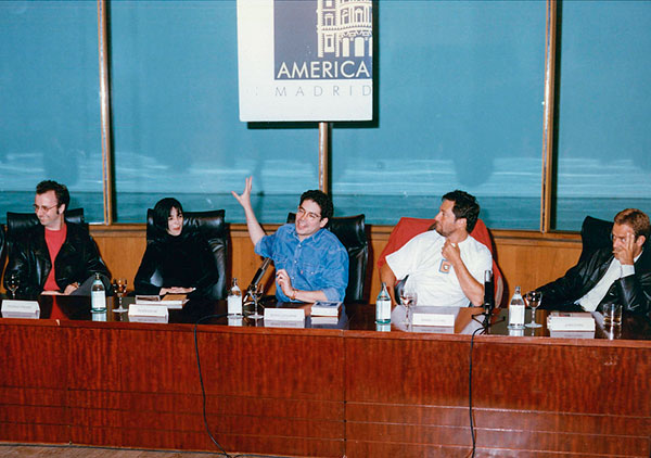 Rodrigo Fresán, Belén Gache, Juan Forn (los tres, autores de la “Biblioteca del Sur” de editorial Planeta), Daniel Guebel y Boris Izaguirre como moderador, Casa de América de Madrid, Madrid, 12 de marzo de 1997.